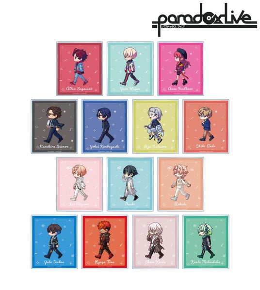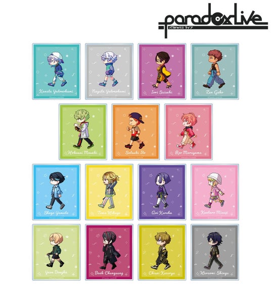 矢戸乃上 珂波汰、矢戸乃上 那由汰、翠石 依織、雅邦 善、征木 北斎、伊藤 紗月、円山 玲央、大和 憧吾、緋景 斗真、呉羽 葵、三洲寺 甘太郎、燕 東夏、白 忠成、九頭竜 智生、辰宮 晴臣の歩く姿を新たにちびキャラに描き起こし、アクリルカードに仕上げました。