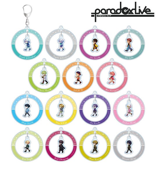 朱雀野 アレン、燕 夏準、アン・フォークナー、西門 直明、神林 匋平、棗 リュウ、闇堂 四季、御山 京、イツキ、ロクタ、犬飼 憂人、土佐 凌牙、甲斐田 紫音、御子柴 賢太の歩く姿を新たにちびキャラに描き起こし、ゆらゆら動くアクリルキーホルダーに仕上げました。