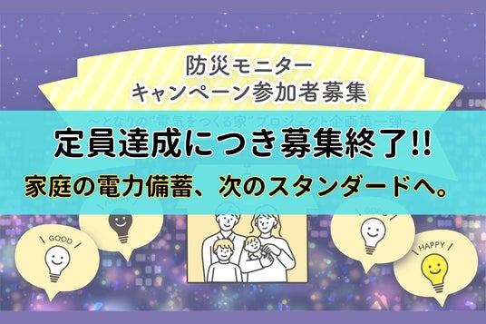 業界歴14年、8,000件の太陽光・蓄電池の設置を手掛ける石川企画合同会社(本社:茨城県常総市、代表:石川 聡)は、2025年9月より展開している【となりの“電気をつくる家”プロジェクト】における「電力防災モニターキャンペーン」について、定員達成に伴い募集を終了したことをお知らせいたします。全国から多数のお問い合わせ・ご関心をいただき、厚く御礼申し上げます。