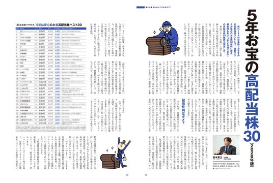 「10年で株価50倍の日本株は」「5年お宝の高配当株30〈2026年版〉」「インフレに勝つ高配当株30」「日米ダウの犬+子犬投資法」「累進配当40年以上の株」など、金融機関のプロ取材のもと厳しい基準で選んだランキングを並べました。