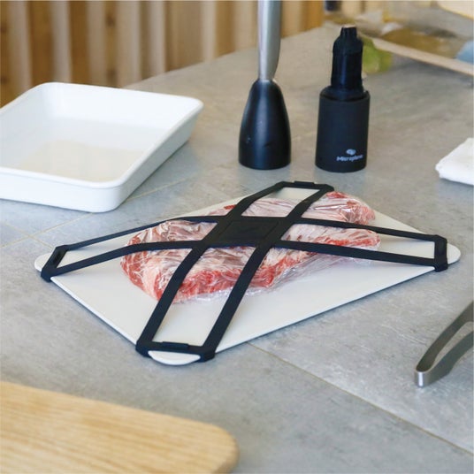 専用シリコーンバンドを使うことで、食材をプレートにしっかり密着させ、ズレや浮きを防ぐことができます。