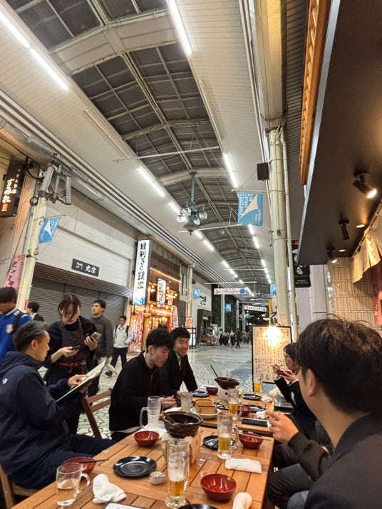 期間限定で清水駅前銀座商店街のAブロック(清水駅側)の一部店舗の軒先で店舗メニューの注文、飲食ができます。静岡市と連携した道路の利活用の実証実験として、 10時~22時に歩行者天国となる駅前銀座商店街の利点を生かし、従来の商店街としてだけでなく、市民の方に利用してもらう空間として活用する取り組みを実施中です。