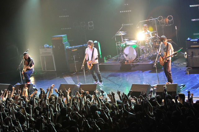 ライブ終盤、『supernova』で起こった大合唱の心地良い余韻に包まれる中、藤原がアルペジオのイントロを奏で始める。アルバム『COSMONAUT』の最後を飾り、ツアータイトルの由来にもなっているであろう『beautiful glider』。この曲に登場する、夜明け前の空に飛び立とうとするグライダーの姿は、会場に集まった自分を含む観客ひとりひとりであり、会場に来られなかった大勢のファンひとりひとりであり、これまで彼らの楽曲に登場してきたさまざまな登場人物であり、バンド自身の姿であると思う。藤原はこの日、歌のある場所でCDと歌詞を変えて歌った。誰にも見えない、雨雲の中を行くグライダーたちが、音楽を通じて互いを見つけ出し、ここで出会えた奇跡を静かに祝福するような、どうしようもなく愛おしく、切ない時間だった。