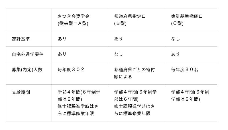 - 家計基準撤廃口(C型):経済的条件を問わず、全国から年間30名を採用。