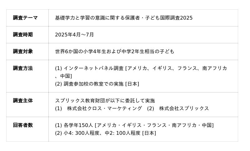 スプリックス教育財団 基礎学力と学習の意識に関する保護者・子ども国際調査2025