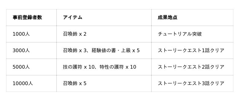 登録者数に応じて、ゲーム開始時にアプリ内で使える各種アイテムをプレゼントいたします。【事前登録特典】