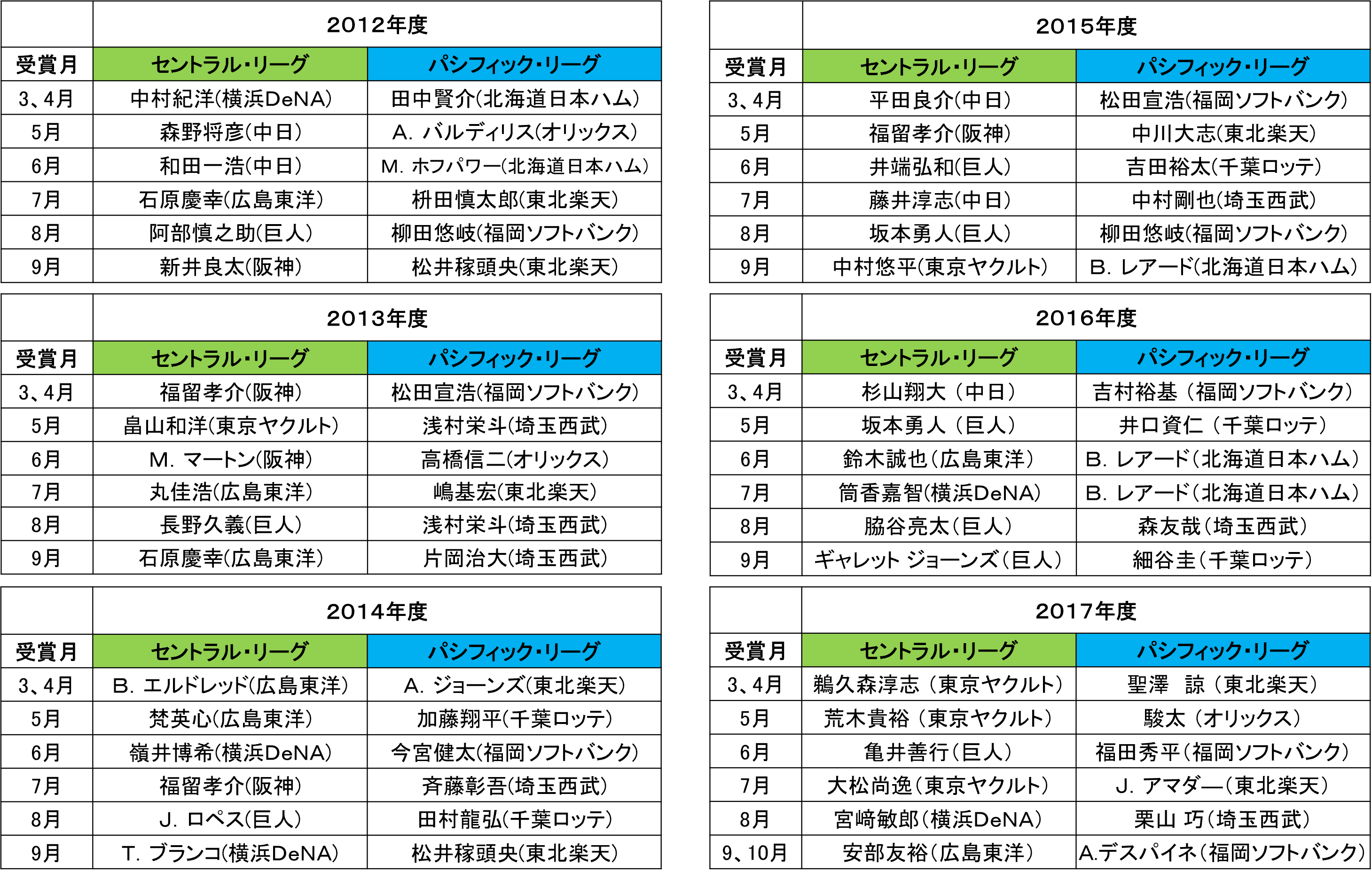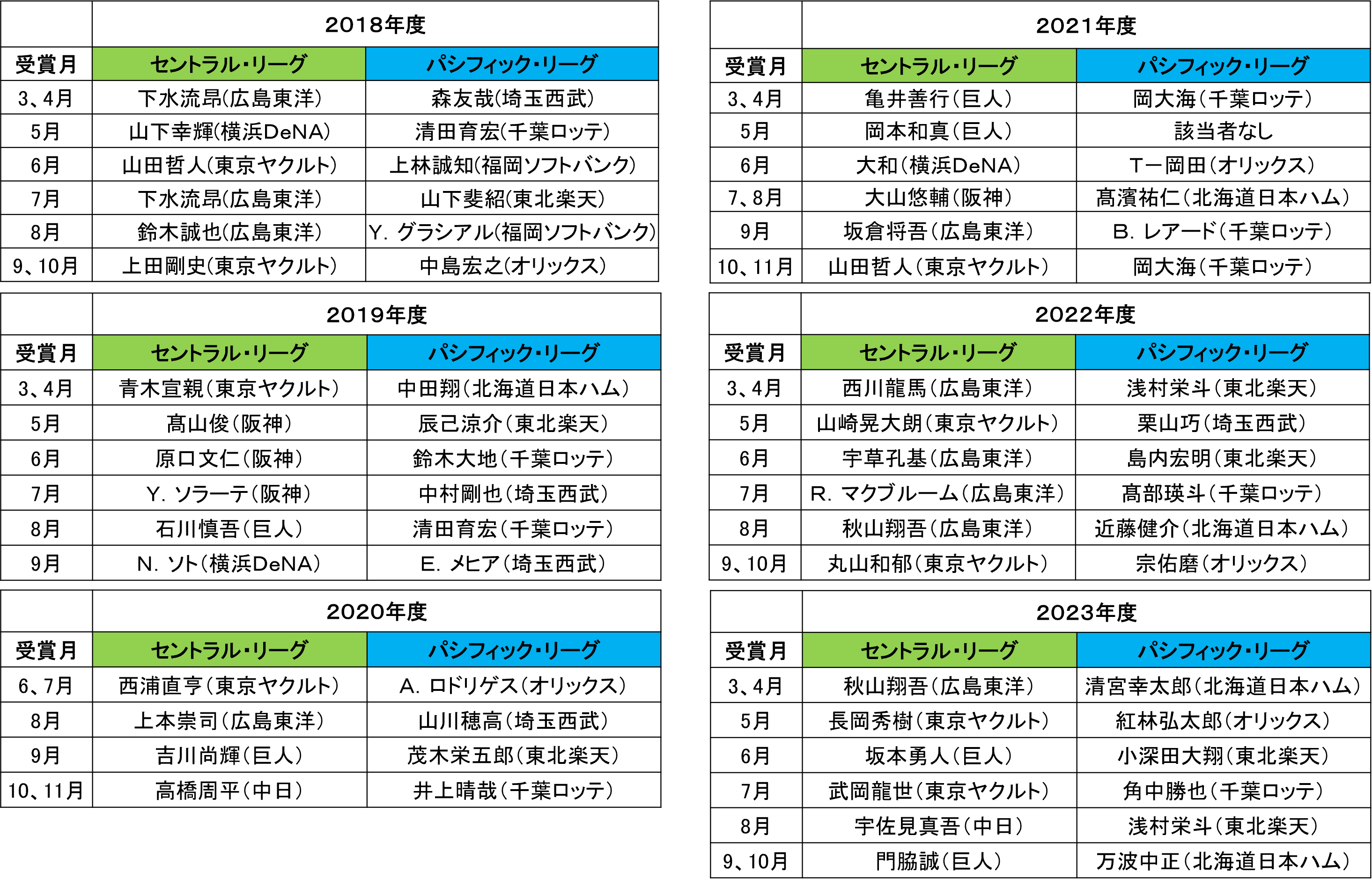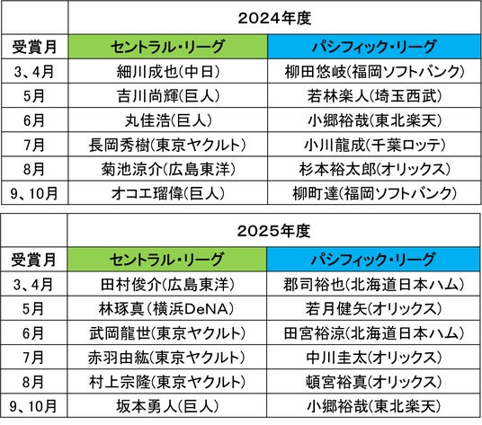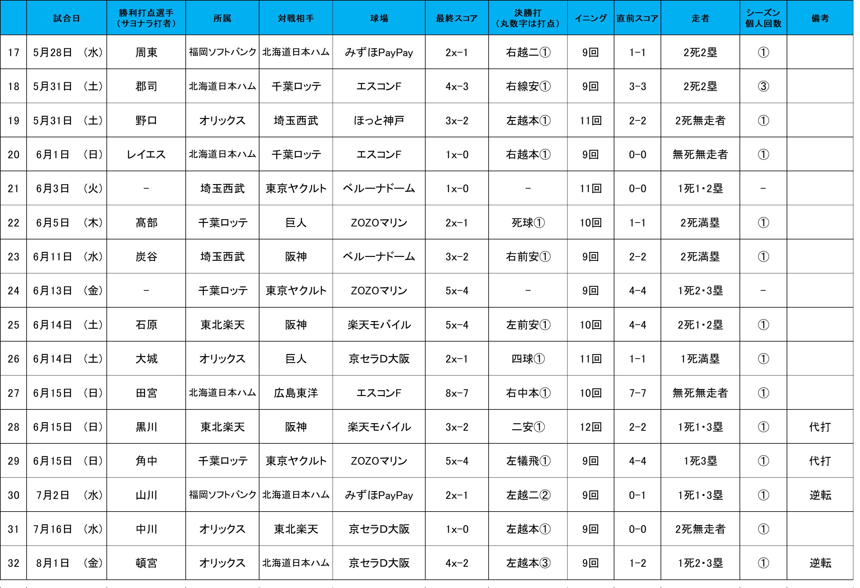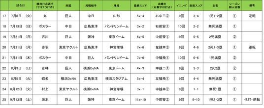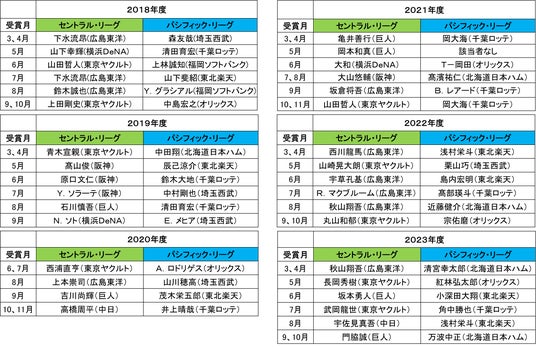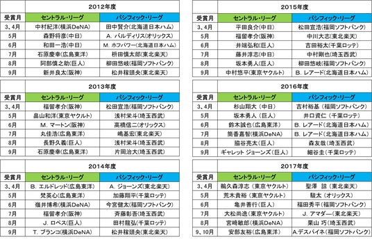 【月間 「スカパー! サヨナラ賞」歴代受賞選手】