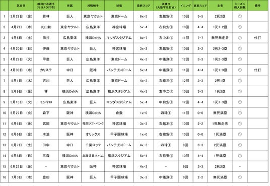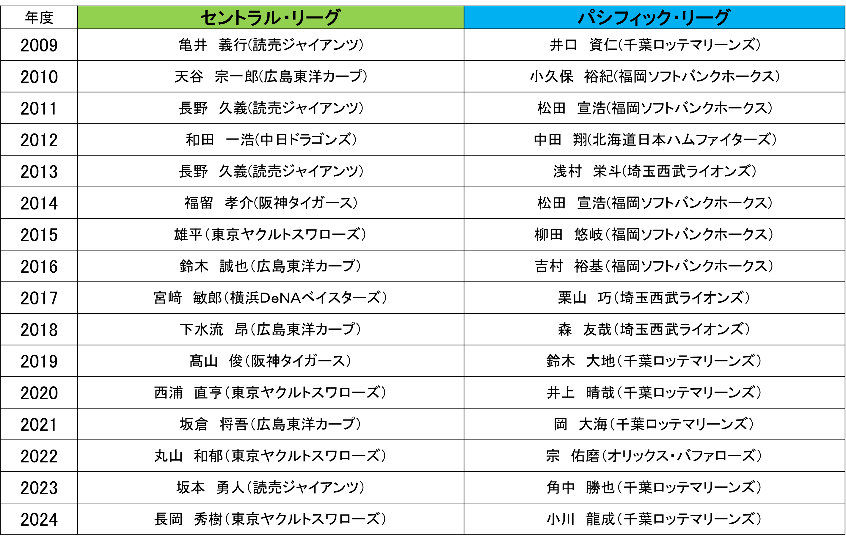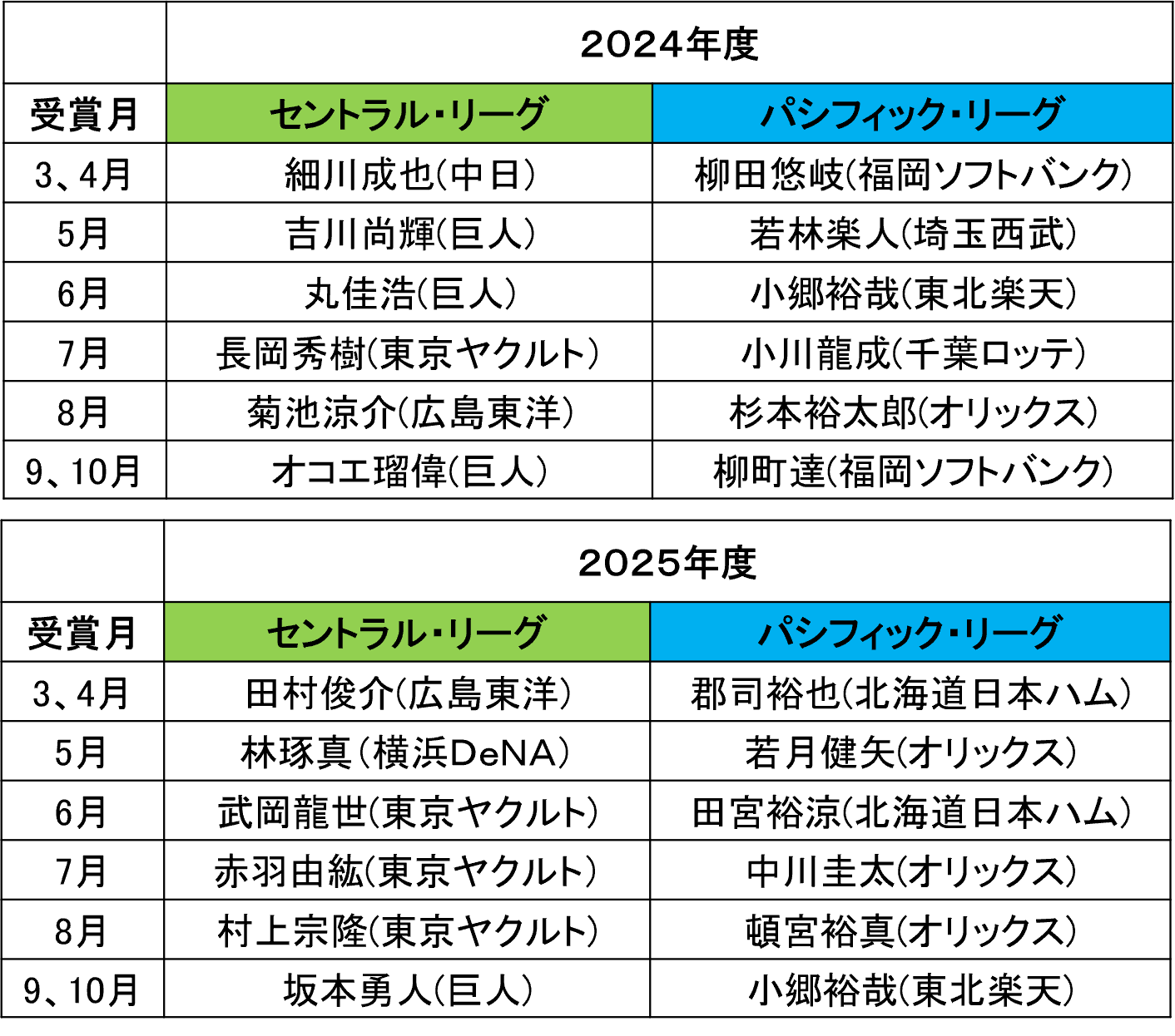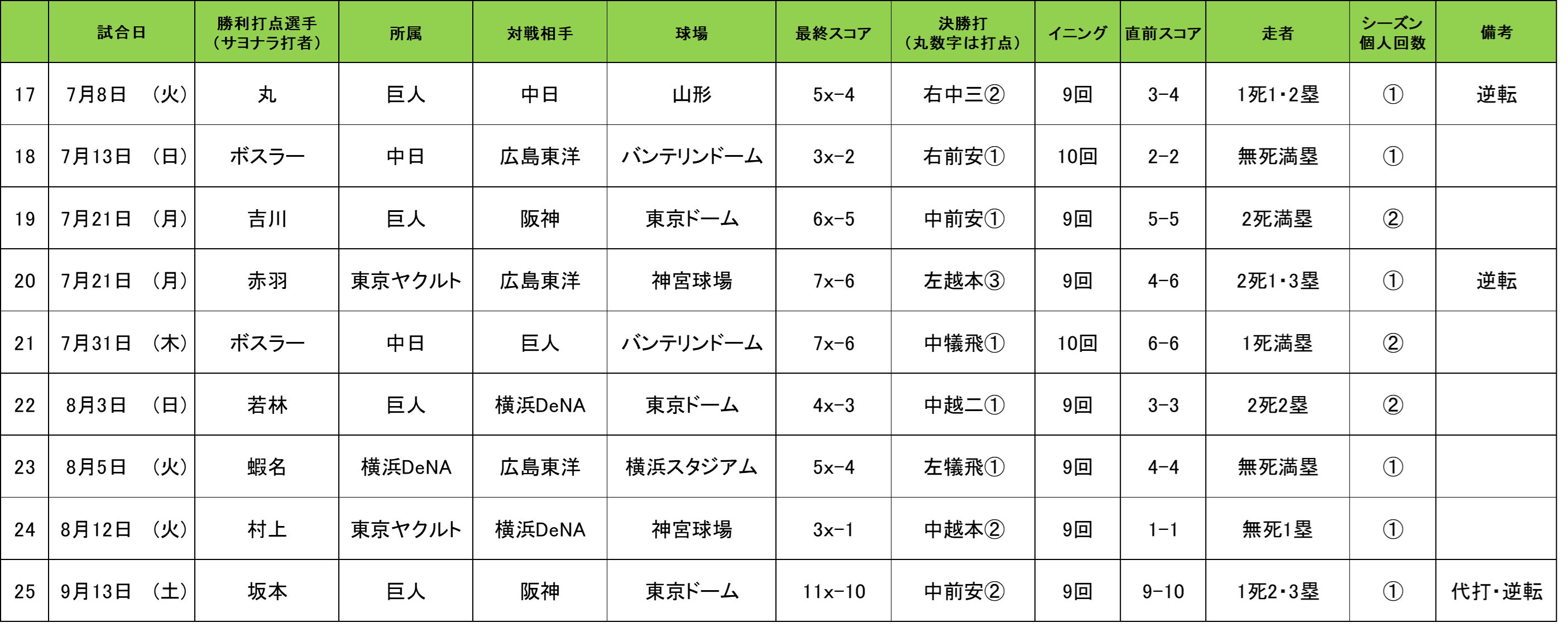 【月間 「スカパー! サヨナラ賞」歴代受賞選手】