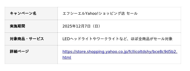車・バイク用カスタムパーツ専門店エフシーエル(fcl.)を展開する株式会社WiNEEDS HOLDINGS(所在地:広島市南区、代表取締役社長:尾田 雅史)は、夜間のアウトドアシーンにおける安全と快適さを向上させるためのカスタム解説記事を公開いたしました。あわせて、Yahoo!ショッピング公式ショップにて最大30%OFFとなるセールを開催中です。