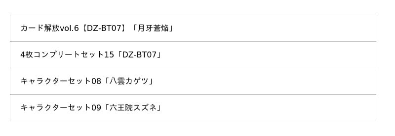 ▲カード解放vol.6【DZ-BT07】「月牙蒼焔」