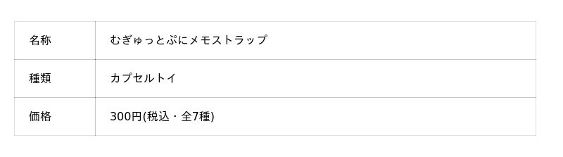 仕事や勉強の合間に“むぎゅっ”とストレス解消!実用性も兼ね備えたカプセルトイ『むぎゅっとぷにメモストラップ』が1月上旬より順次発売。