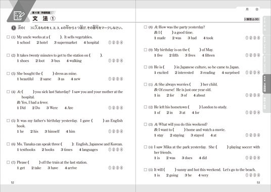 1単元4ページで構成されており、英検と同じ形式の問題に数多く取り組むことができます。また、最後に予想問題で本番に向けた力試しをして、合格を確実にしていきます。