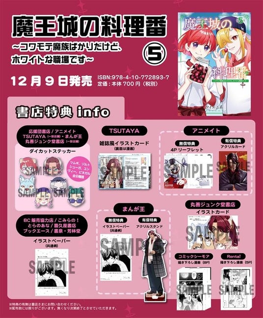 Webマンガサイト「くらげバンチ」で好評連載中の『魔王城の料理番~コワモテ魔族ばかりだけど、ホワイトな職場です~』(ワイエム系)コミックス第5巻が、2025年12月9日(火)に新潮社バンチコミックスより刊行いたします。