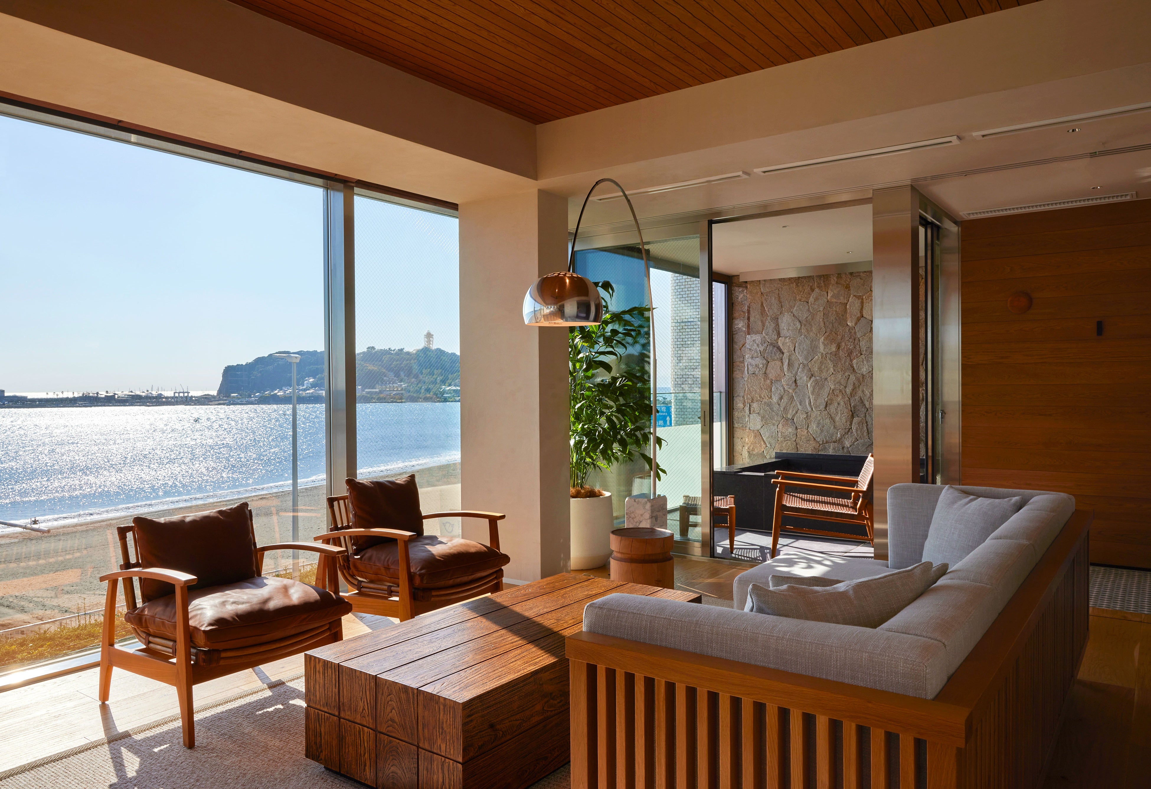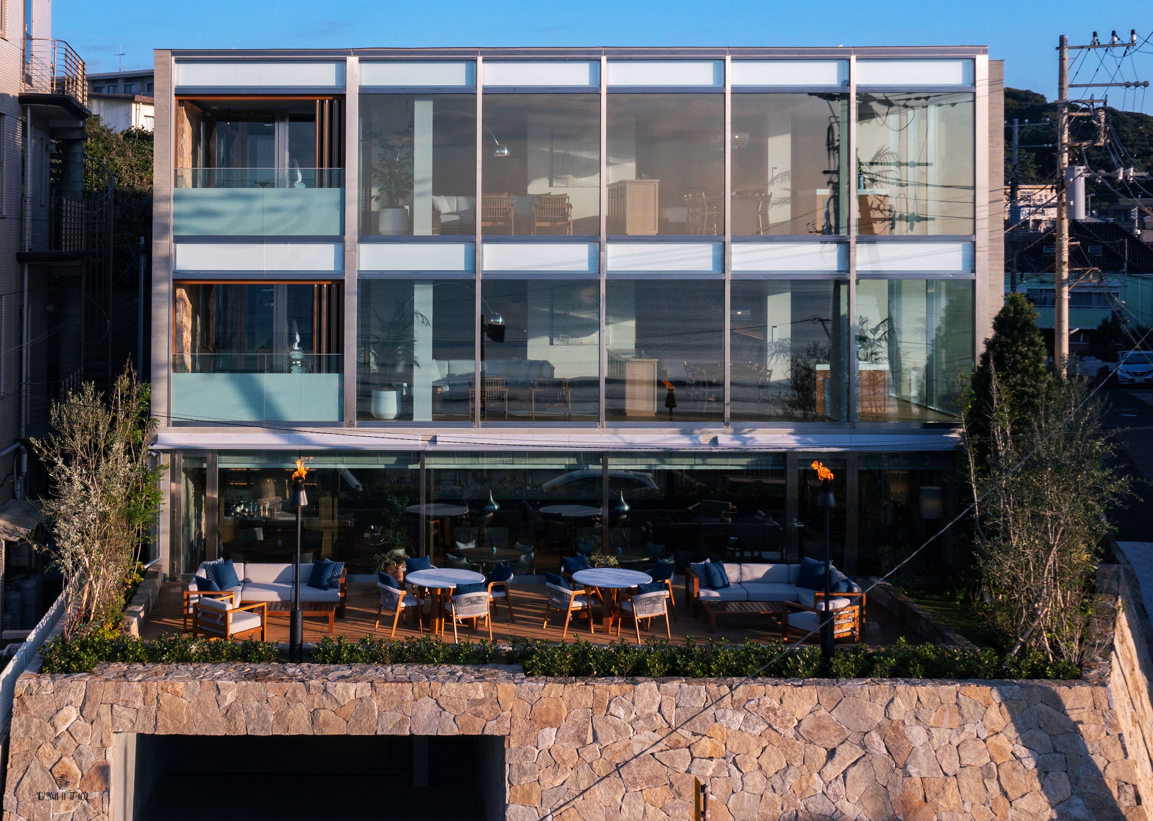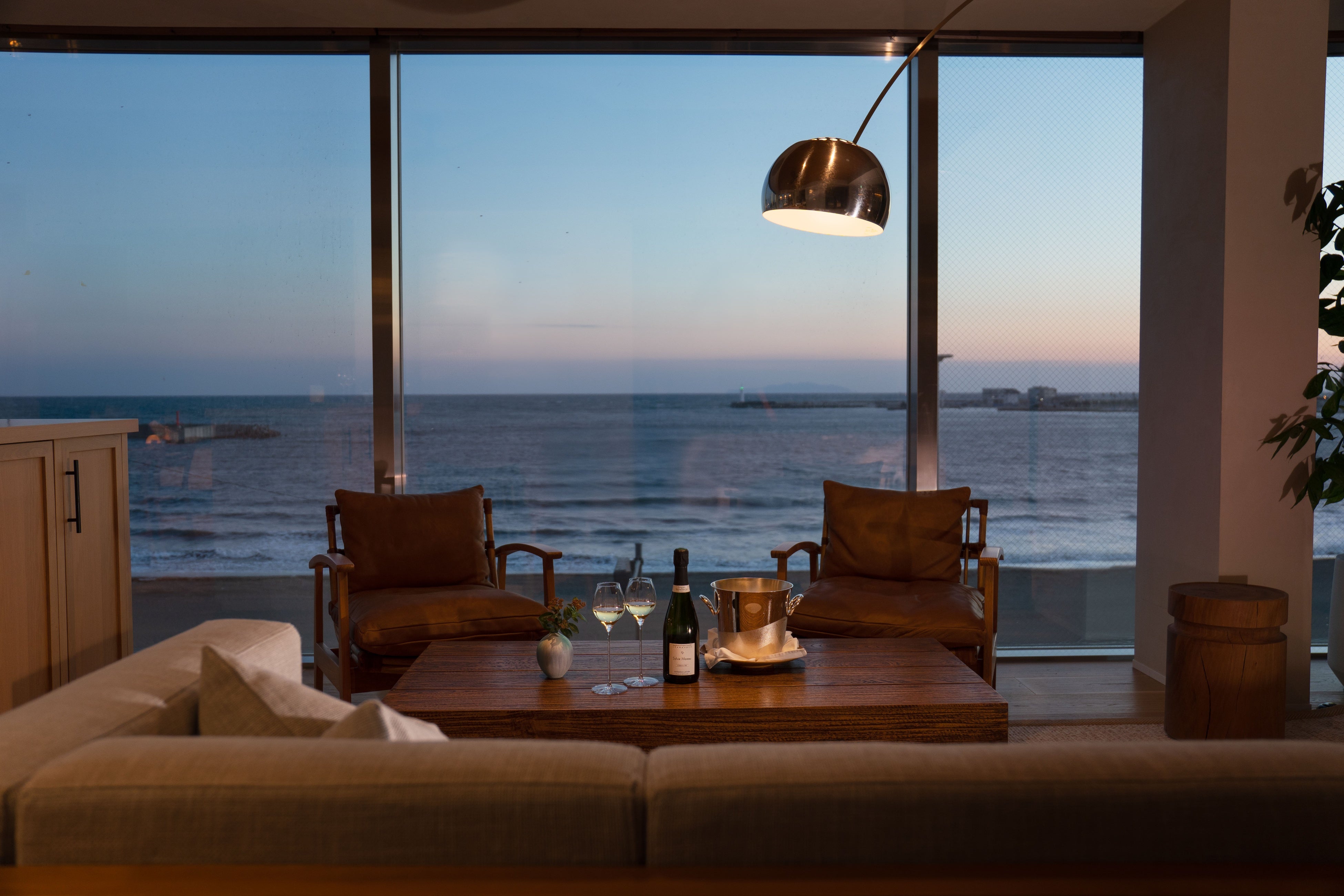「UMITO 鎌倉 腰越」は、目の前に相模湾と江の島を望むオーベルジュのスモールラグジュアリーホテルです。海最前列の立地を生かし、まるで海と空に抱かれるような開放感と静けさの中で過ごす、日常から離れた時間を提供します。2024年11月にオープンした UMITOシリーズ初の本格オーベルジュであり、客室はわずか2室のみ。各フロアに1室だけの約130平方メートル 超のスイート仕様で、2つのベッドルームとリビングやテラス、露天風呂・サウナを備えたゆとりある造りが特徴です。全面ガラス張りの海側の窓からは、昼は青く広がる海、夕暮れには夕焼けに染まる江の島、夜には波音とともに静かに移ろう景色を望むことができ、訪れる人の記憶に残る滞在を叶えます。