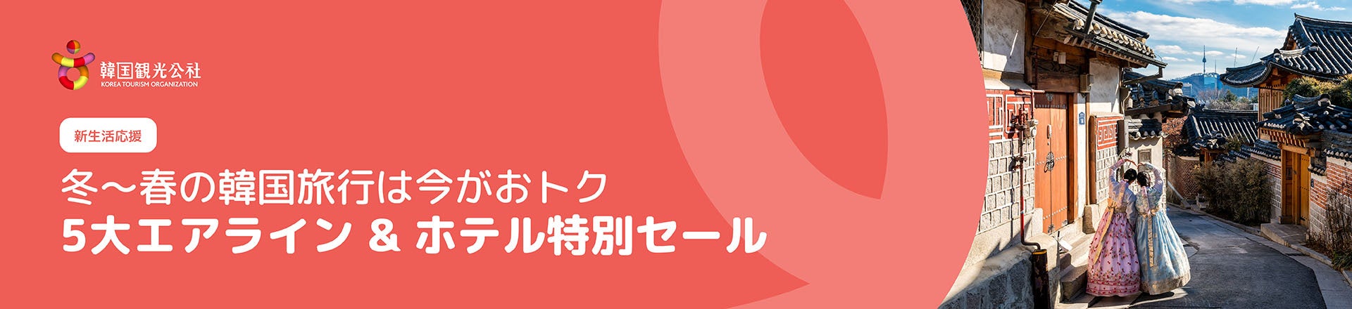 フライト時間が短く、年末年始の旅行にもぴったりな「韓国」への旅を応援するため、韓国路線を運航する主要5社と連携し、特別運賃を提供します。フルサービスキャリアからLCCまで、予算やスケジュールに合わせてお得に韓国へ飛び立つチャンスです。韓国観光公社とのパートナーシップの元で、ぜひ韓国への旅行を今のうちにおトクに確保していきましょう。