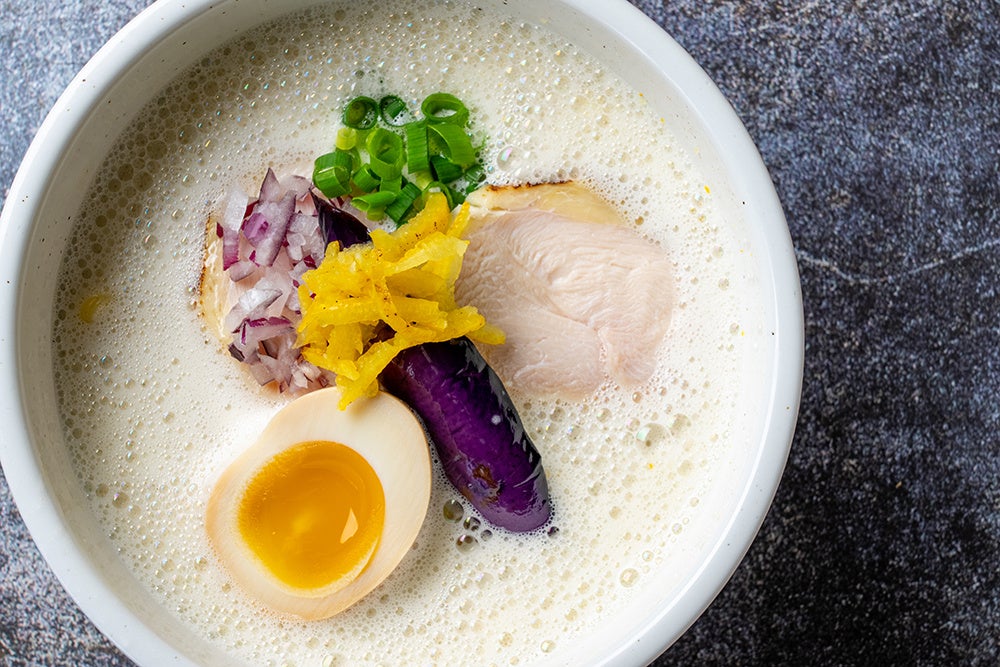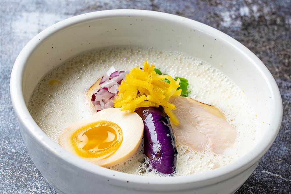 鶏の旨味が凝縮した鶏白湯スープに、ゆず皮を加えて丁寧にミキシング。