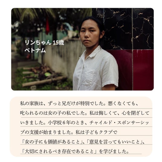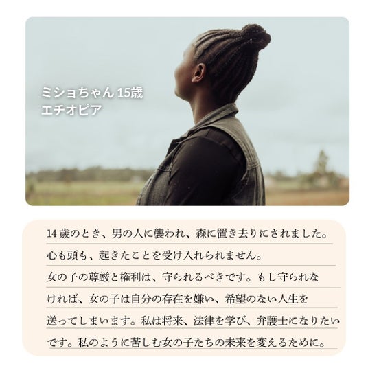 「女の子の尊厳と権利は、守られるべきです。私は将来、法律を学び、弁護士になりたいです。私のように苦しむ女の子たちの未来を変えるために」