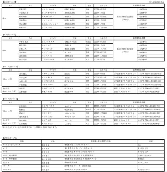 2026年1月10日(土)にタラハシ―(アメリカ)で開催される「タラハシ―2026世界クロスカントリー選手権大会」に派遣する日本代表選手(U20男女)が決定しましたのでお知らせいたします。
