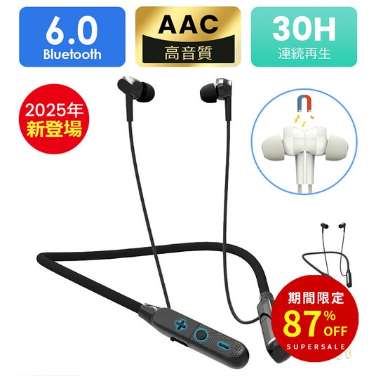 ネックバンドイヤホン87%OFF軽量ネックバンドイヤホンは、業界最先端のBluetooth 6.0機能により、より速く安定した接続を実現。30時間の連続再生で、通勤、旅行、作業など、あらゆるシーンでの使用に応えます。