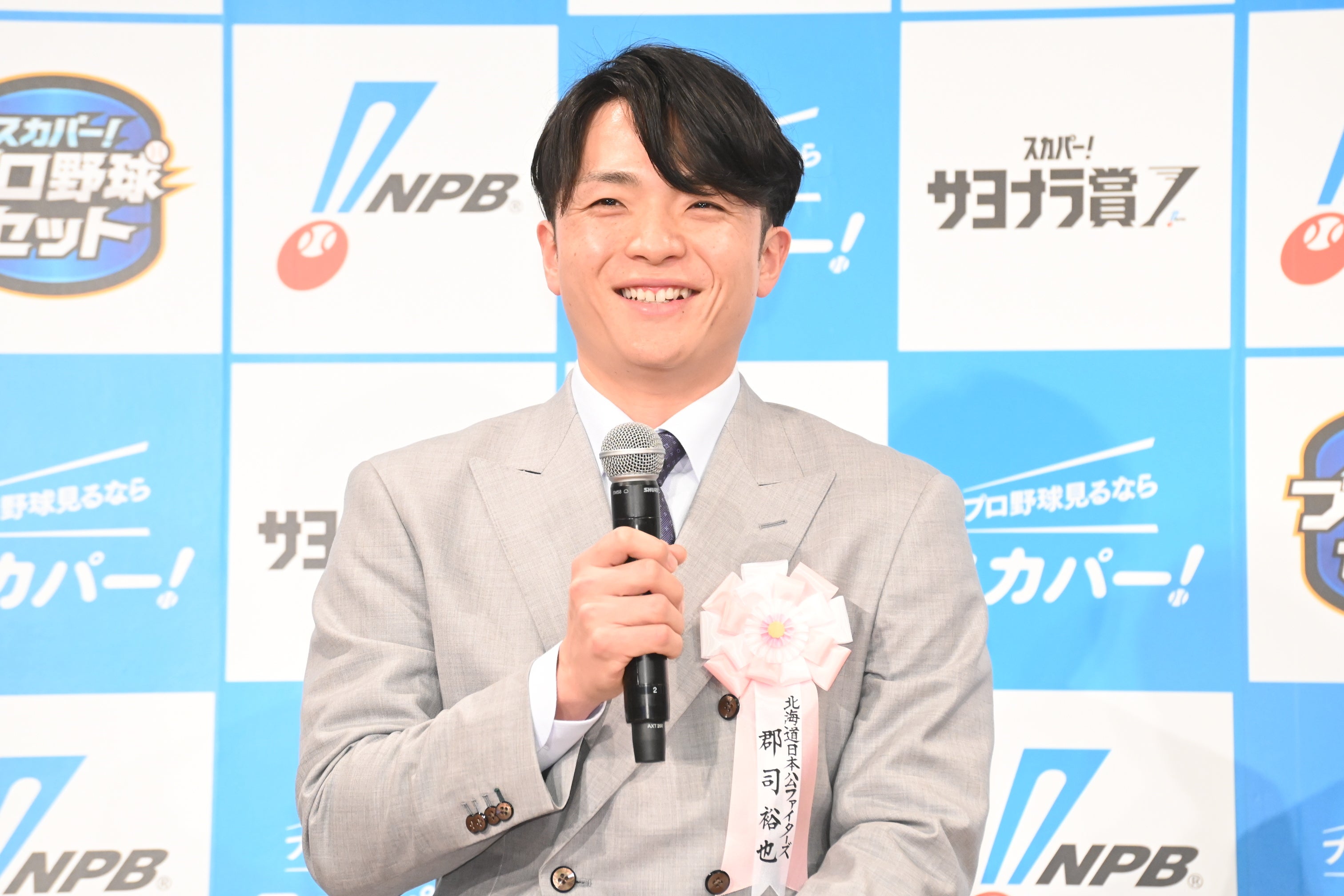 ■郡司 裕也 選手(北海道日本ハムファイターズ)コメント 4月に月間サヨナラ賞取ったときに年間大賞も取ろうと思っていたので、取れてうれしいです。あの場面は延長12回でファンの皆さんが疲れているのを感じていたんですけど、代打郡司がコールされて、歓声が上がった上で結果を出せたので嬉しかったです。今年はチームとして2年連続でソフトバンクに負けて悔しい思いをしました。来年はドラマティックな場面をたくさん見せて優勝を狙っていきたいです。個人としては4番サードを新庄監督に任せられているので、何回も打点王を取られている、日本ハムの先輩・中田さんを目標に頑張ります!