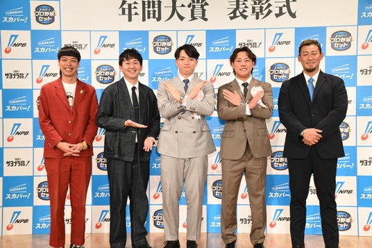 スカパー! は12月4日(木)に「2025 スカパー! ドラマティック・サヨナラ賞 年間大賞」の表彰式を開催しました。表彰式には受賞選手である、東京ヤクルトスワローズ・赤羽 由紘選手(セ・リーグ)と北海道日本ハムファイターズ・郡司 裕也選手(パ・リーグ)が登壇しました。表彰式後には受賞両選手に加え、ゲストに中田 翔氏、スカパー! プロ野球アンバサダーのバッテリィズをお迎えしトークショーが行われました。