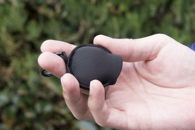 手のひらに収まるサイズに収納された超コンパクトなメガネ拭きです。