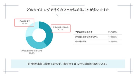 67%が事前にカフェを決めておらず、「今すぐ入りたい」という即時性のニーズが高いことが分かります。