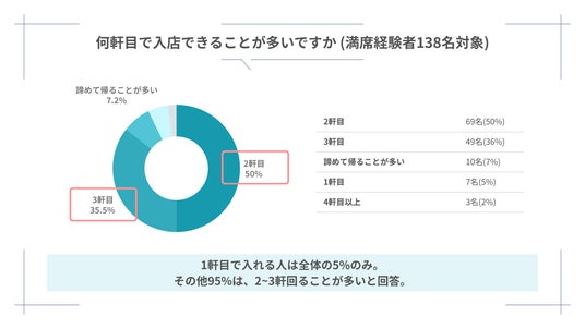 満席の場合、平均何軒目で入店できるか(満席経験者138名):