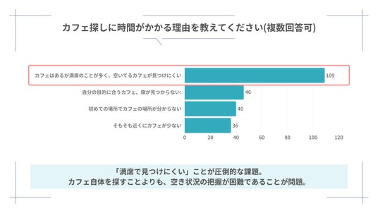 - カフェ探しに時間がかかる理由、77%が「満席で空いているカフェが見つけにくい」
