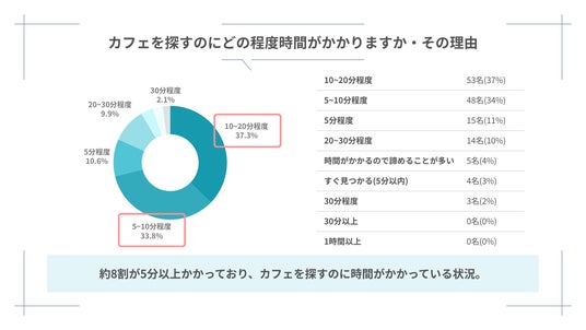 カフェは街に多数存在するものの、「入りたいカフェがなかなか見つからない」という声を耳にします。本調査では、カフェ探しにどれくらい時間がかかり、なぜ時間がかかるのか、その実態を明らかにしました。