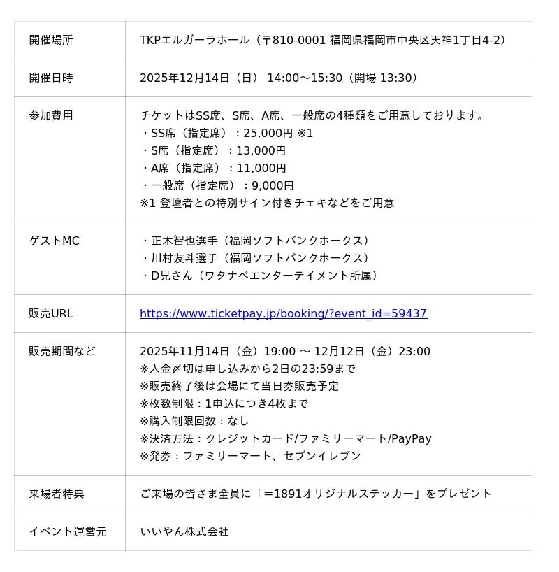 福岡ソフトバンクホークスの正木智也選手、川村友斗選手によるトークショーを開催いたします。