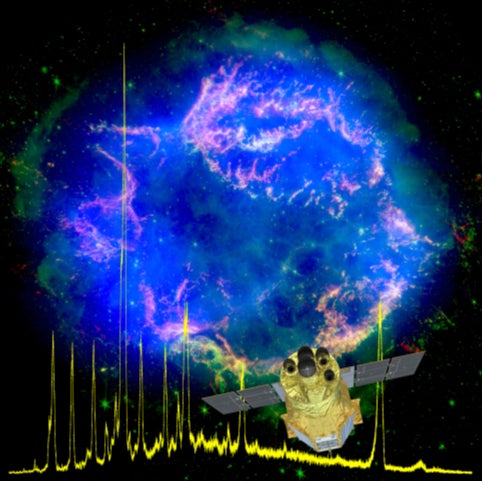 明治大学理工学部物理学科の佐藤寿紀専任講師、京都大学理学研究科の松永海(博士後期課程2年)、内田裕之助教等の研究グループは、X線分光撮像衛星(クリズム;X-Ray Imaging and Spectroscopy Mission)による超新星残骸カシオペア座Aの精密X線分光観測によって、巨大な恒星の内部で塩素やカリウムが大量に合成されていたことを明らかにしました。この成果は、恒星の内部活動が、宇宙における生命必須元素の供給源として重要な役割を果たしていることを示唆しています。明治大学がこれまで開発に携わった高分解能分光装置「Resolve(リゾルブ)」による観測成果です。