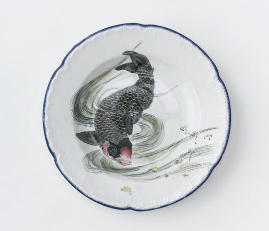 エスカリエ・ド・クリスタル《流水鯉文深皿》19世紀後期-20世紀初頭 個人蔵(茨城県陶芸美術館寄託)