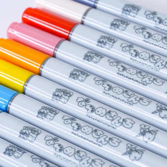 セットに含まれるコピックチャオ(10色)は、コピックのマーカー全色を所有するなつめさんちが悩みながら厳選した10色。コピックのマーカーを初めて手に取る方にもおすすめできる、お気に入りの色を選んでいただきました。そしてコピックチャオには、なつめさんち監修のもと本体にコラボデザインプリントを行いました。このセットでしか手に入らない、貴重なコピックに仕上がっています。