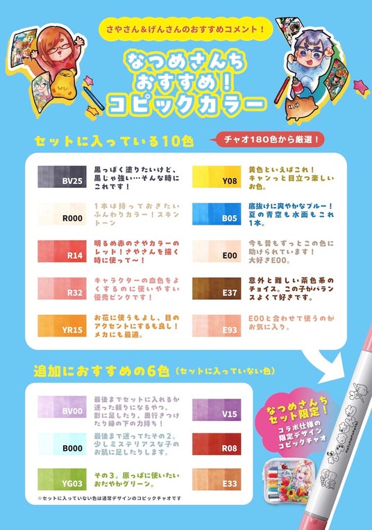 ・その他詳細は「なつめさんちが選んだコピックおえかき対決セット」製品ページでご確認ください。