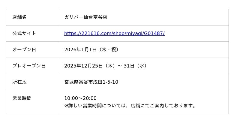 ガリバー仙台富谷店(宮城県富谷市):2026年1月1日(木・祝)