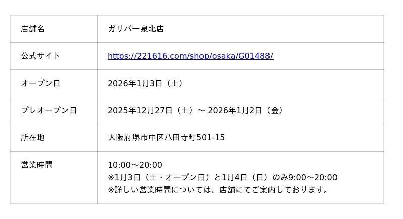 ガリバー泉北店(大阪府堺市) :2026年1月3日(土)