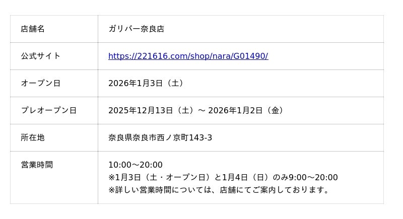 ガリバー奈良店(奈良県奈良市) :2026年1月3日(土)