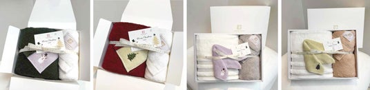 これからのホリデーシーズンに映える、限定カラーのタオルや刺繍入りハンカチを詰め合わせたアソートボックスです。