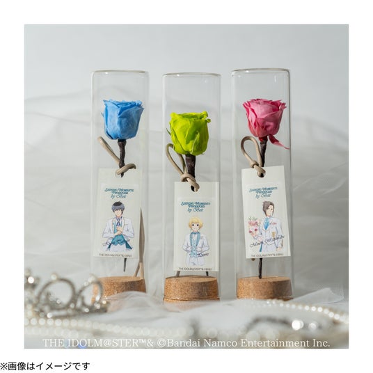 プラン利用者限定で購入できるオリジナルグッズとして、Beitの3人それぞれのイメージに合わせたプリザーブドフラワーのガラスグッズを企画・制作しました。
