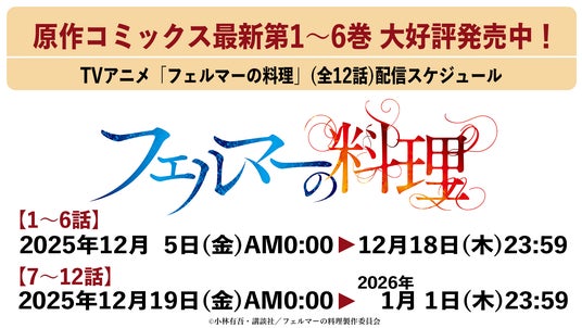TVアニメ「フェルマーの料理」 (全12話) 配信スケジュール