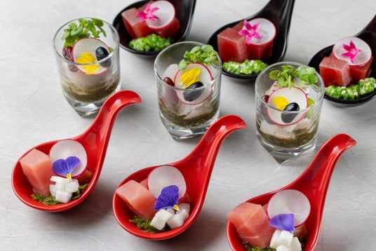 オールインクルーシブの宿泊料金にはラウンジ利用が含まれ、「樂遇/EVENING SOCIAL」(15~18時)では、スパークリングワインやビールなどのお酒や、コーヒー、紅茶、ハーブウォーターなどのソフトドリンクが提供され、「鳥渡/NIGHT CAP」(21~23時)では、好みのお酒とその土地ならではの逸品をいただけるバータイムを満喫できます。ディナー、朝食はビュッフェスタイルで提供、アルコールを含むドリンクも宿泊料金に含まれます。ディナーでは「海鮮蒸し焼き」「なめろうサラダ」、朝食では「のっけ丼」「さんが焼き」「房総ひじききんぴら煮」「鰯つみれの漁師汁」など、郷土色豊かなメニューを楽しめます。