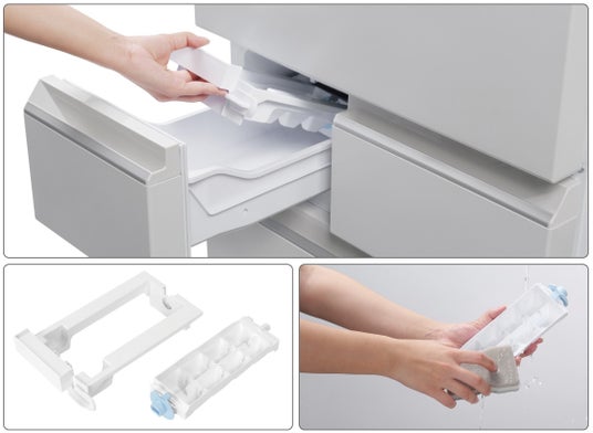 自動製氷機能を搭載、製氷皿を外して洗えるからいつも清潔 他の食材と氷を分けて保存できる独立タイプの製氷室には、便利な自動製氷機能付き。氷をたくさん使うご家庭の製氷の手間を軽減します。製氷ユニットと製氷皿は取り外して水洗いすることができます。