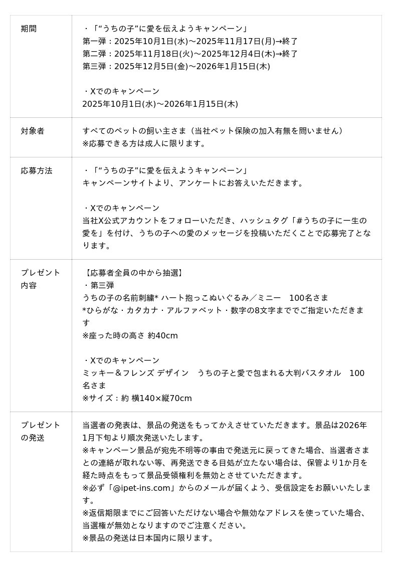 ※詳細は、「“うちの子”に愛を伝えようキャンペーン」は特設サイト、Xでのキャンペーンは当社の公式Xアカウント(@IPET__INS)からご確認ください。