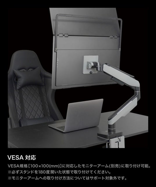 ■VESA規格(100×100mm)対応でモニターアームにも設置可能