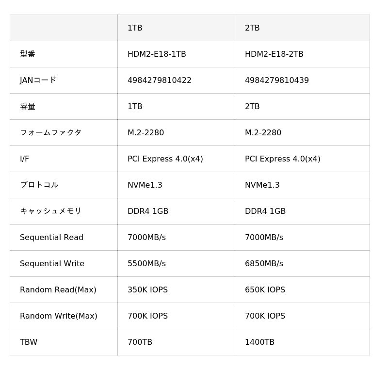 内蔵型SSD 1TB型番:HDM2P3X4N1T