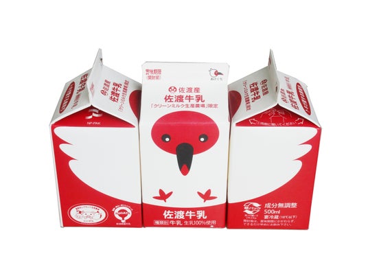 佐渡牛乳ガレットのパッケージデザインは、佐渡牛乳でおなじみのデザインをベースに制作しました。特定のキャラクター名はないものの、トキパックの愛称で新潟県内では広く親しまれており、牛乳パックを開くと朱鷺が羽ばたくように描かれているのが特徴です。その姿には、“ 佐渡の自然と共に生きる” という思いが込められています。