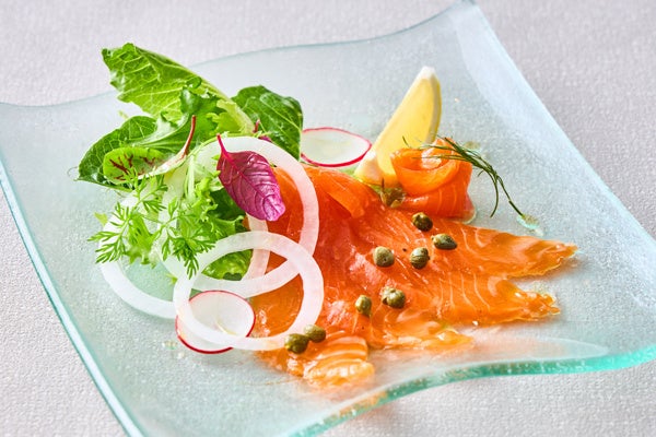 ふくいサーモンの ディルマリネ 蜂蜜マスタードソース ¥2,400上品な脂ののりともっちりとした肉質の「ふくいサーモン」を、爽やかな香りとほろ苦さが特徴のハーブ“ディル”を使ってマリネしました。爽快感とさっぱりとした味わいが口の中に広がり、蜂蜜マスタードソースと一緒に召し上がっていただくことで、酸味と甘みの絶妙な味わいをご堪能いただけます。
