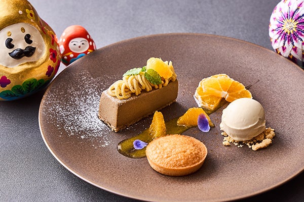 デザート盛り合わせ ¥2,300〈加賀棒ほうじ茶のムース〉特有の香ばしい香りとなめらかで優しい甘みをお楽しみいただけます。