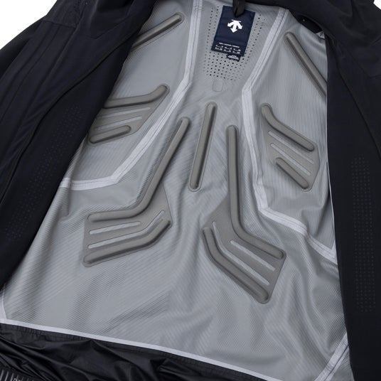 スキージャケットは、ハードシェルジャケットとミドルレイヤージャケットに分かれており、気温や使用状況に応じて、それぞれ単体での着用も、組み合わせての着用も可能な3in1仕様になっています。ハードシェルジャケットは、衣服内の蒸れを解消したいという選手からの要望もあり、当社研究開発拠点「DESCENTE INNOVATION STUDIO COMPLEX(DISC)OSAKA」で開発した、蒸れで不快を感じる箇所に空気の流れを促す換気構造を搭載した「エアロストリーム」シリーズのジャケットです。ミドルレイヤージャケットには温かさを感じやすい部分のみに中わたを配置し、効率よく保温する独自の機能設計「スマートパディング」を採用し、「暖かさを閉じ込める保温性」と「蒸れを防ぐ透湿性」の両方を兼ね備えています。